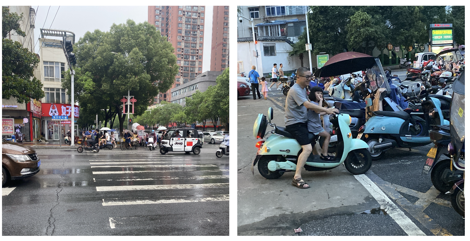 Xinyang is a moped city. They are available to rent on every street. They are very practical for the city. Drivers can slip through dense traffic, use narrow alleys, park them anywhere. They can even drive them on sidewalks or the wrong way down one-way streets.
